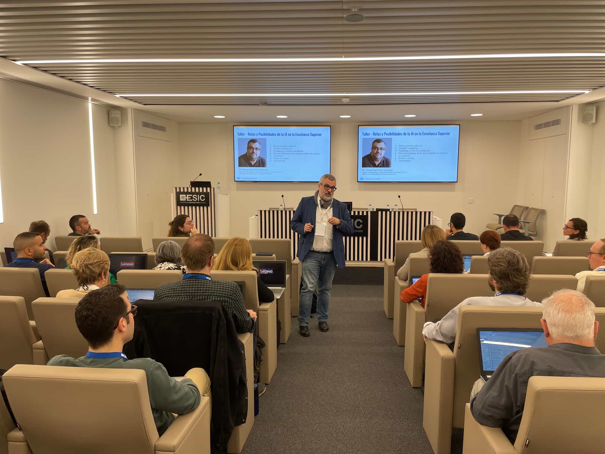 La jornada inició con un taller impartido por el Doctor Miquel Àngel Prats, experto en liderazgo de la innovación educativa con apoyo TIC y aplicaciones tecnológicas. Durante el taller, se llevó a cabo un debate sobre si la Inteligencia Artificial es una aliada o una amenaza en el aula. Los participantes tuvieron la oportunidad de explorar los pros y contras de la IA en la educación y cómo esta tecnología puede mejorar o perjudicar el aprendizaje de los estudiantes.